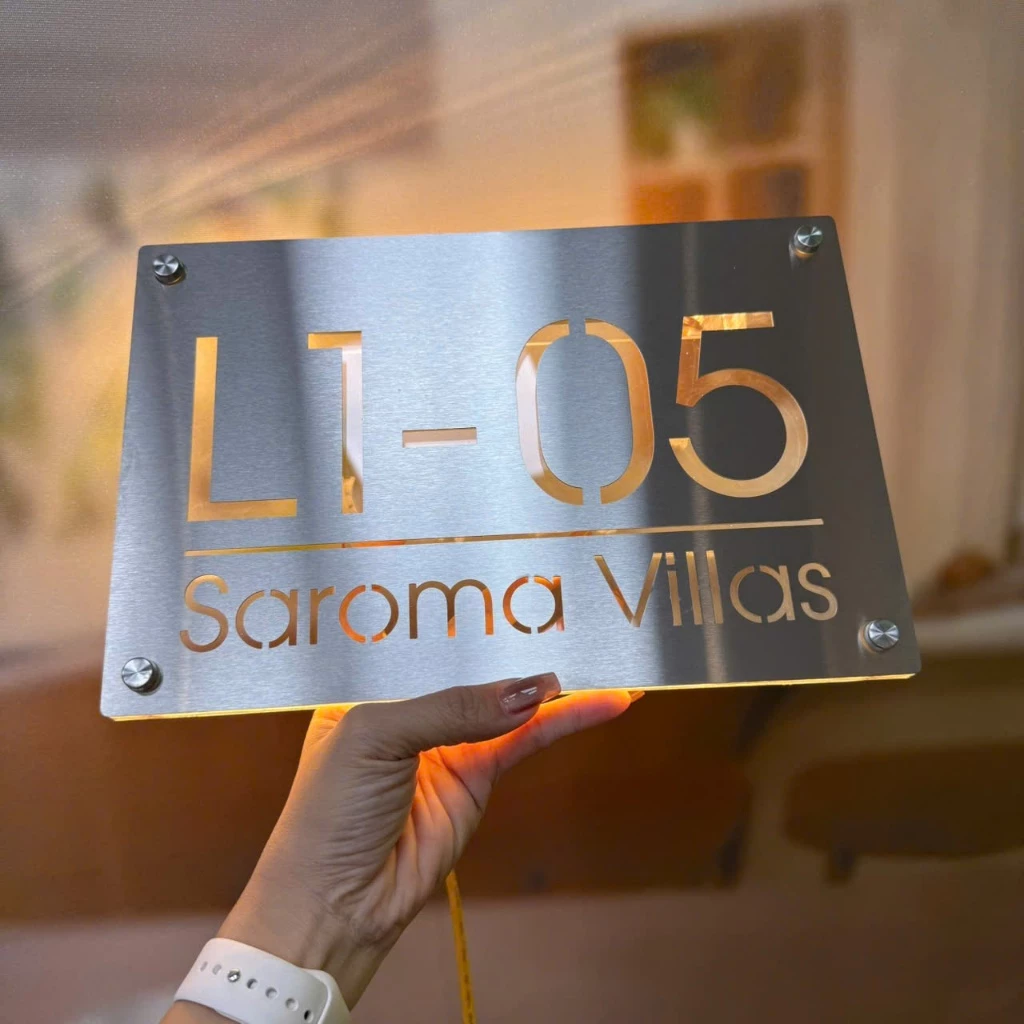 * Màu sắc: Mặt inox xước trắng – chữ inox vàng, chân mica hắt sáng