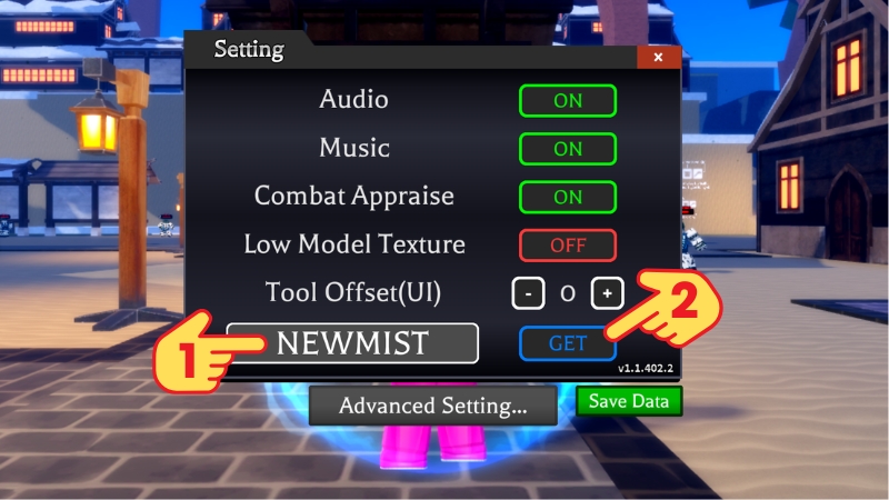 - Bước 2: Một cửa sổ cài đặt hoặc nhập code sẽ hiện ra. Bạn sẽ thấy một ô trống để nhập mã code. Điền chính xác mã code Demon Blade còn hiệu lực vào ô này. Sau đó, bấm nút “Get” hoặc “Redeem” để xác nhận việc sử dụng code.